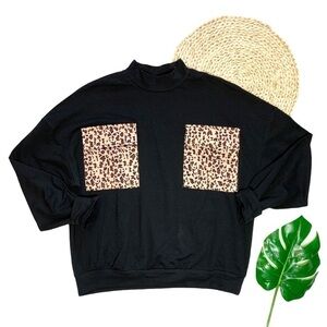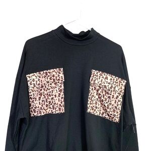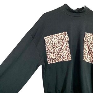 Shein Double Breasted Leopard Cheetah Pocket Crewneck Sweatshirt Size XS