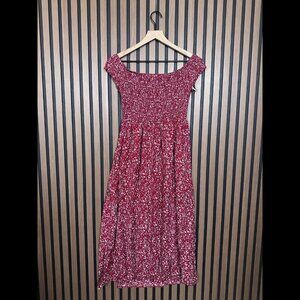 Shein Dress 0XL Womens Red Maxi Smocked Floral Short Sleeve Flowy