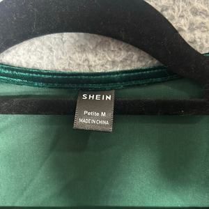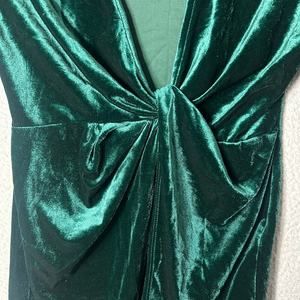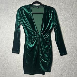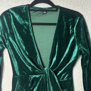 Shein Dress Womens M Green Velvet V Neck Wrap Holiday Xmas Party Formal Dress