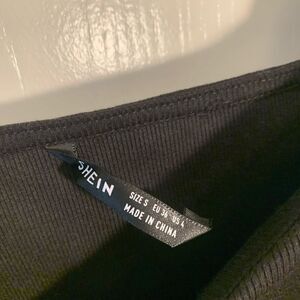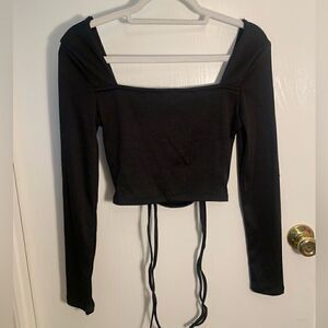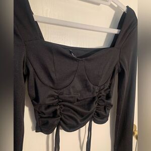 Shein EUC black ribbed cinched front long sleeve crop top Size Small