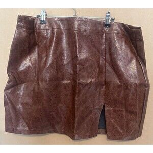 Shein Faux Leather Mini Skirt With Slit Brown Sz 2XL NWT price firm!