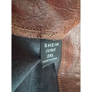 This Shein faux leather mini skirt in brown, size small, is the perfect statement piece for any party or casual occasion. The skirt features a slit and a zip closure, adding a touch of flair to your outfit. Made from faux leather, it is durable and versatile, perfect for the summer, fall, and spring seasons. The mini length and solid color make it a stylish addition to any woman's wardrobe, especially for those looking for a plus-size option.
