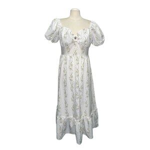 Shein Floral Cottagecore Midi Dress Sz Large Womens Puff Sleeves & Sweetheart Ne