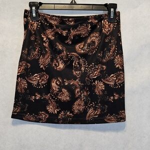 Mesh brown and tan Paisley print Mini Skirt with black lining under. Size M