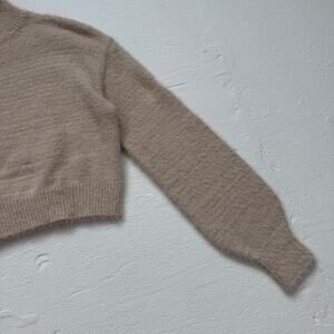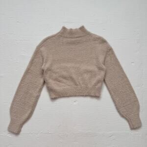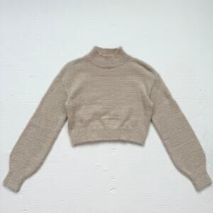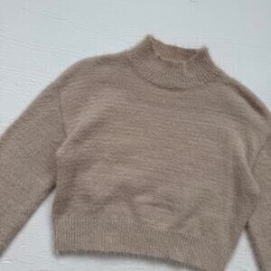 Shein Fuzzy Beige Cropped Knit Sweater, Size Small