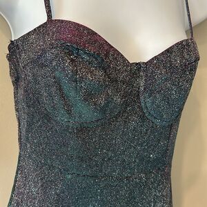 Shein Glitter Ruffled Bustier Adjustable Spaghetti Strap Mini Dress Medium