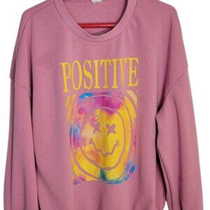 Shein Graphic Sweatshirt Long Sleeves Crew Neck Ribbed Bottom & Cuffs Pink 9 Y