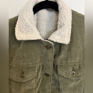 GUC, no flaws, Shein green corduroy button up jacket with sherpa lining. Two front breast pockets with button closure and two pockets at the waist for hands.