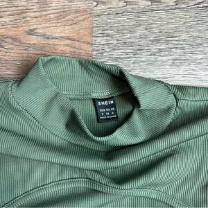 Shein Green Long Sleeve Fitted Cropped Shirt