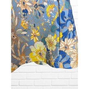 Shein Grey Yellow Floral Print Round Neck Casual Peplum Top Womens Size medium