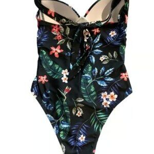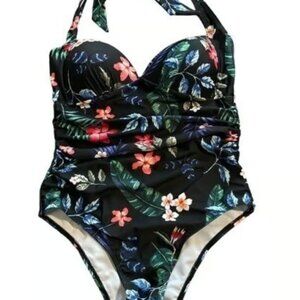 Shein Halter Black Floral Sweetheart Neck Swimsuit Size Small M-304