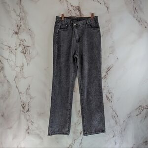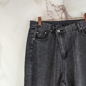 Shein Jeans Women Medium 28 X 28 Black High Rise Bootcut Denim Assymetrical Crop