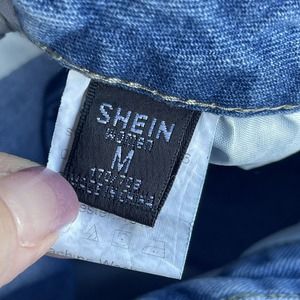 Shein Jeans Womens Size Medium Blue Wide Leg Busted Knee High Waisted Distressed