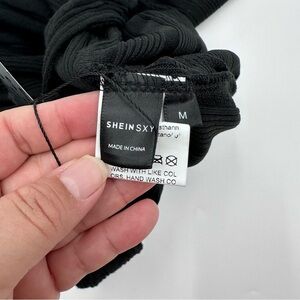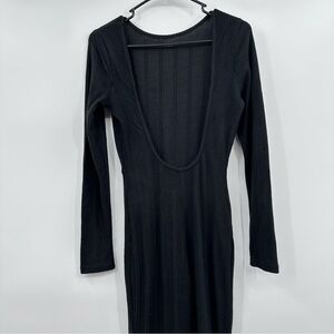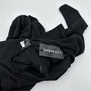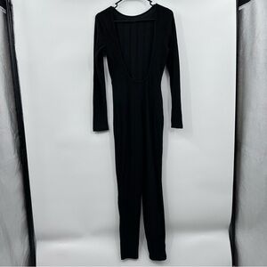 Style: Shein Jumpsuit Women Medium Black NEW Ribbed Knit Long Sleeve Open Back Sxy
