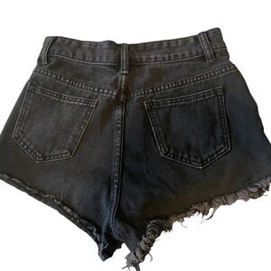 Shein Juniors Jean Shorts. Zip up. Size XS. Black with cute daisies. 2 inch inseam and measures 13 inches across flat.