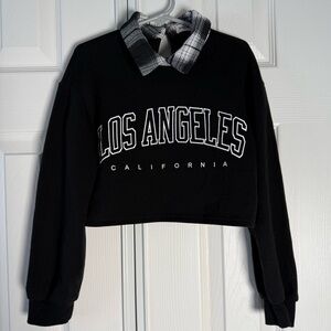 Shein Kids Los Angeles Black Cropped Sweatshirt