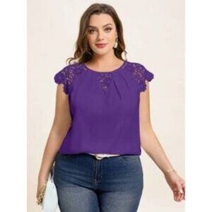 Shein L Purple Laser Cut Sleeve Blouse Pleated Front L