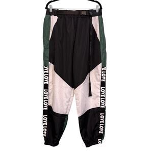 Shein LOVE Letter Taped Side Buckle Colorblock Sweatpants Women XXL Black Jogger