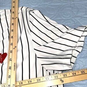 Shein Large White & Black Striped T-Shirt With Heart Embroidery