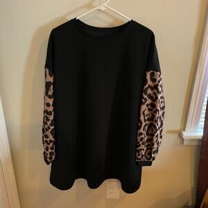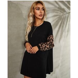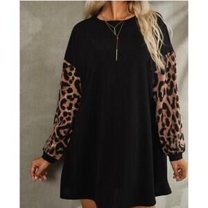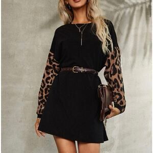 Shein Leopard Spliced Drop Shoulder Sweatshirt Dress Size Large