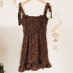 Shein Leopard Tie Sweetheart Ruffle Dress Size S