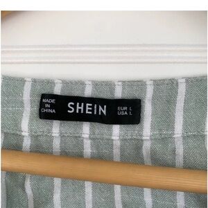 This elegant green blouse from SHEIN features charming ruffled cap sleeves and a stylish tie front. The bib collar adds a touch of sophistication, making it a versatile piece for both casual and formal occasions.