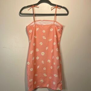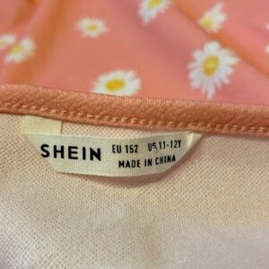 Shein- Light Orange Mini Dress with Daisies and Tie Straps- Size 11-12 Years Old
