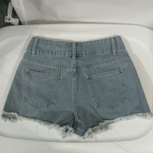 Shein Light Wash High Rise Distressed Denim Rhinestone Embellished Shortie Shorts - Size Large. Gently used condition.
