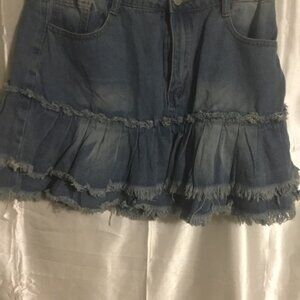 Shein Light Wash Two Layer Unfinished Raw Hem Jean Denim Mini Skirt L