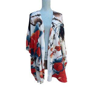Shein Lightweight Silky Abstract Floral Print Kimono Wrap Coverup - XL