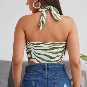 How Cuuuuuuuuuute. Shein Lime Green + White Swirly Zebra Wrap Top Crop Top. Can Be Worn as a Strapless Top or Twisted as a Halter.