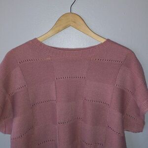 Shein Lune Pointelle Knit Sweater-Large-Blush Pink-Boxy-Batwing Sleeve-Classic