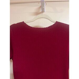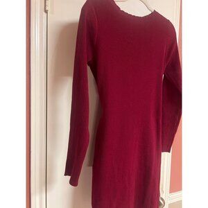 Shein M Burgundy Tie Waist Long Sleeve Scalloped Neckline Sweater Dress