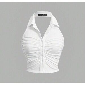 Shein MOD Women's Ruffled Halter Top Sz 4XL Womens White Halter Top