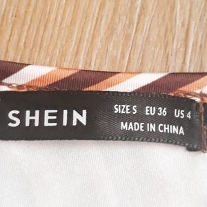 Shein O-Ring Front Cutout Crop Top. Size Small (4). Colors: Brown, tan and white. Marble Print. Pit to pit 15". Length 14". Shoulder to sleeve cuff 27". Bottom band (measured side to side) 13 1/2". 95% polyester, 5% elastane. Stretchy. Includes Brown Bead Stretch Bracelet. Dark brown beads are fuzzy with a velvet texture. Amber beads are textured plastic. Stretches to 5" long. Excellent condition.