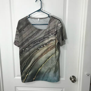 Shein Marble Print Asymmetrical Neckline Polyester XL Top