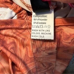 Shein Marble Swirl Print 70’s inspired tie front long sleeve ultra cropped top is on trend this year and a fun piece to add to your wardrobe! Size XS measurements PTP 12” length from longest point of 12” up to 9 1/2” at tie point sleeve 23 1/2” colors include orange, brown, rust, and red