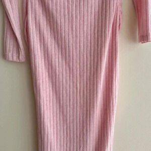 Shein Maternity Cotton Candy Pink Fuzzy Ribbed Off the Shoulder Midi Dress,Small