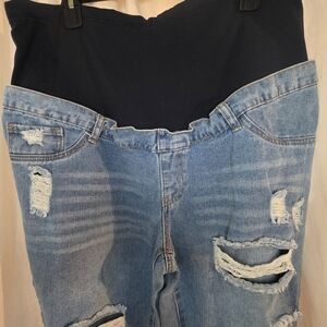 Shein Maternity Distressed Light Wash Jeans half panel Large