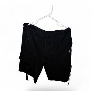 These Shein Men’s Black Cargo Shorts are designed for those who appreciate practicality with a stylish edge. Featuring large cargo pockets with buckled straps, these shorts are perfect for carrying your essentials while on the go. The drawstring waistband offers a comfortable and adjustable fit, ideal for casual wear during warm weather. Made in China, these shorts are labeled size L (Large) and are versatile enough for everyday wear or light outdoor activities.