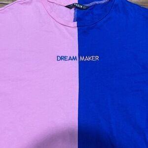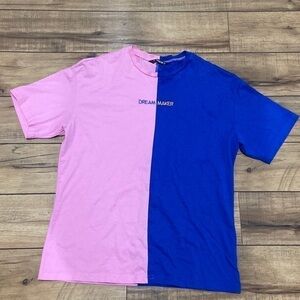 Shein Men’s “Dream Maker” Half Blue Half Pink Short Sleeve Shirt Size Small