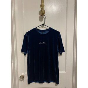 Shein Men's Size Medium Dark Blue Velour Adventure T-Shirt