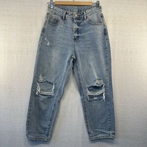 Shein Mom Jeans Distressed Loose Straight Women Sz Petite Medium, Blue Denim