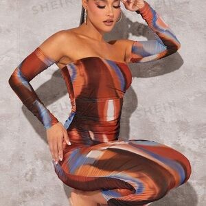 Shein Multicolor Off-Shoulder Bodycon lond out date party birthday dinner Dress