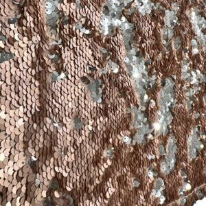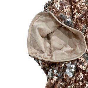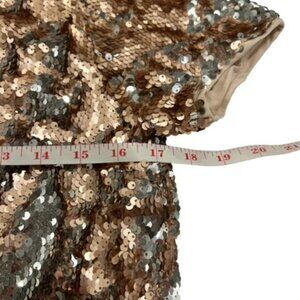 Features: I love sequins! Beautiful and sparkly and this dress has gold on one side and silver on the other - so you can blend the colors any way you like as you push the sequins one way or another. Fully lined with comfortably soft polyester dress. Short Sleeve. Strap on the back of the neck to keep the shoulders in place. Brand new, in bag.