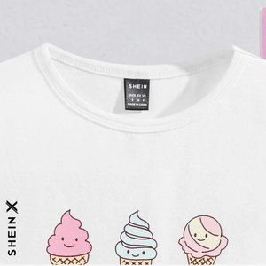 Shein - Shein X’s drop shoulder t shirts with ice cream print on front. Fit to body.