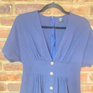 Shein Navy Blue Short Sleeve V-Neck Button Down Mini Dress Women's Size Medium