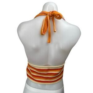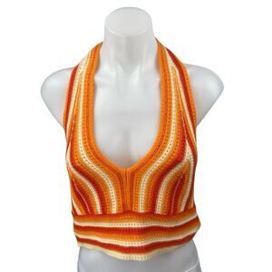 Shein Orange Multi Crochet Knit Sleeveless Halter Neck Cami Camisole Crop Tank Top Size 12