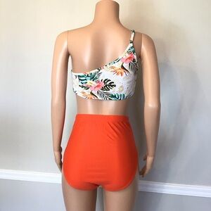 Shein Orange Floral One Shoulder High Waisted 2pc Bikini Set Size Large.