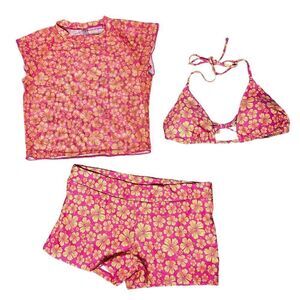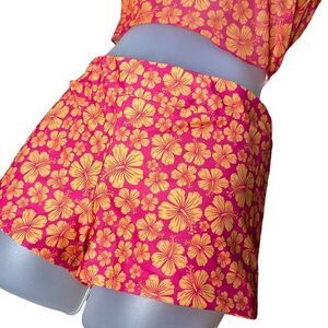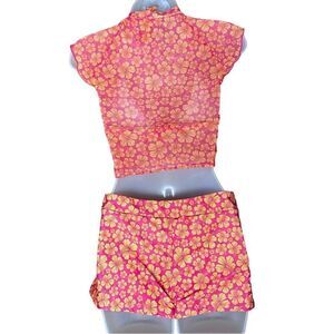 Shein Orange Pink Floral Y2K Neon Orange Sheer Two Piece Swimsuit